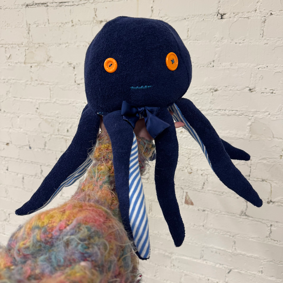 Our main characters are handmade from re-purposed textiles and crafted to order—each one completely unique and stitched with care. Designed to cuddle up with their matching storybook, they help teach sustainability while supporting early reading skills. Thoughtfully created by textile artist Taylor Alexandria Hayden, these one-of-a-kind companions are ready to be loved.